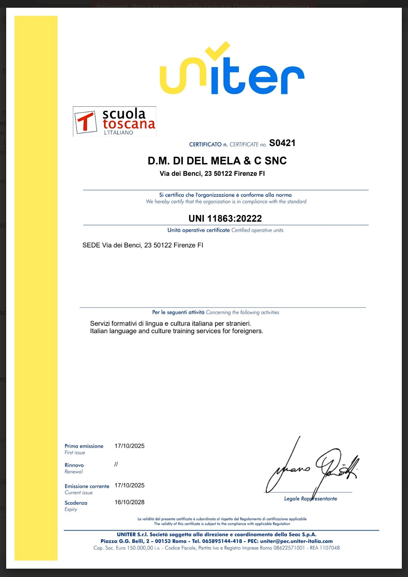 Riconosciuto dal Ministero Italiano della Pubblica Istruzione